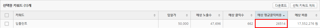임플란트 키워드를 파워링크 상단에 노출시키기 위해 입찰가를 얼마나 높여야 할까요?