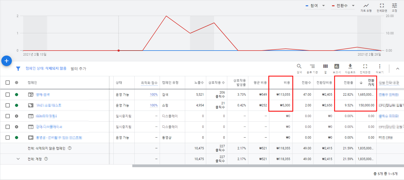 광고하려는 상품, 서비스에 대해 확인하고 전반적인 광고 세팅, 키워드 등록부터 전환율과 전환가치를 체크하여 각 키워드별 가치를 구분해야 합니다. 연관도가 떨어지거나 무의미한 키워드에서는 광고가 노출되지 않도록 구글 광고의 경우 정기적으로 체크하고 관리해야 합니다.