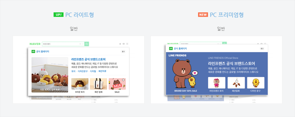 브랜드 검색은 통합검색 결과 최상단에 노출되며, 노출 형태는 크게 PC라이트형, PC프리미엄형, 모바일 라이트형, 모바일 프리미엄형 네 가지로 구분됩니다. 실제로는 조금 더 세분화되며 레이아웃의 차이가 있습니다.