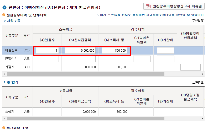 총지급금액 - 총지급금액을 입력(원천세 3.3%를 빼지 않은 금액을 넣어주세요.)